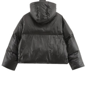 Prada Logo Hooded Puffer Jacket Black