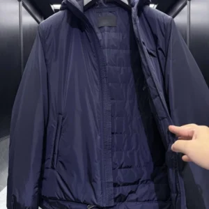 Prada Logo Hooded Puffer Jacket Navy Blue